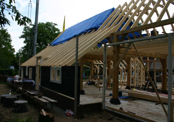 Nieuwbouw schuur met eiken gebinten - oud hollandse pan